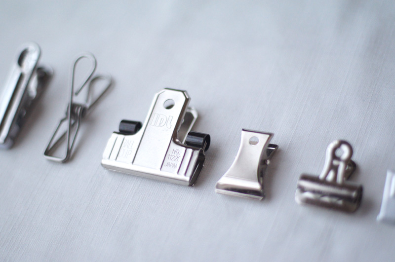 定番の黒ではなく、シルバーのダブルクリップ。