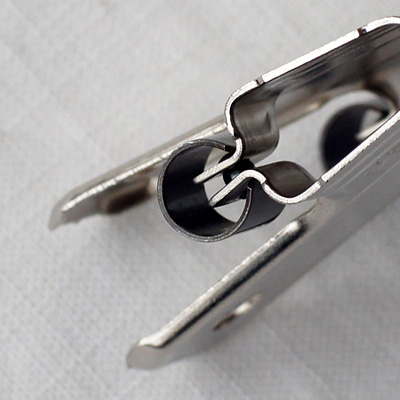 通常の目玉クリップは針金のバネですが、こちらは文字が書かれている部分がバネになっています。