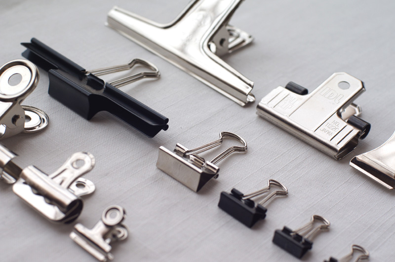 事務系は目玉クリップ、ダブルクリップ、山形クリップ、ゼムクリップなどの種類があり、