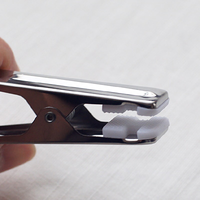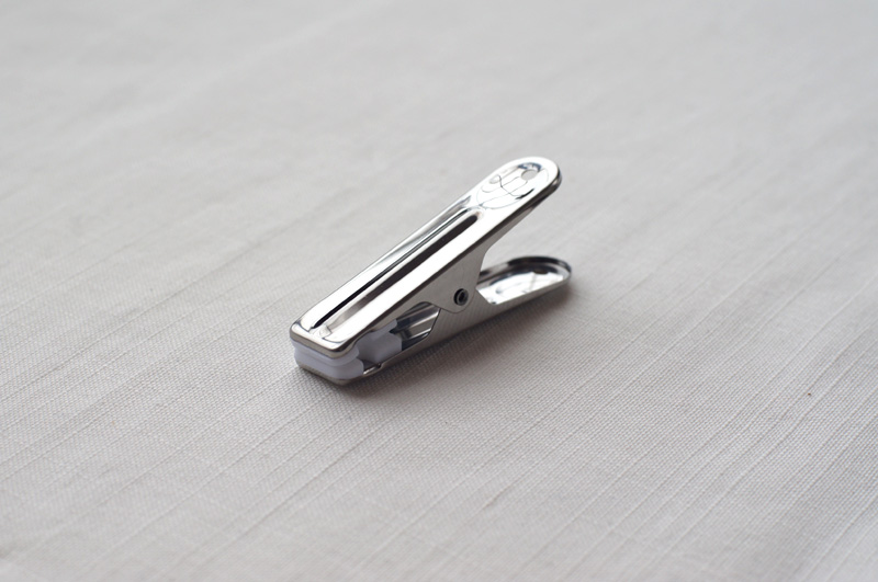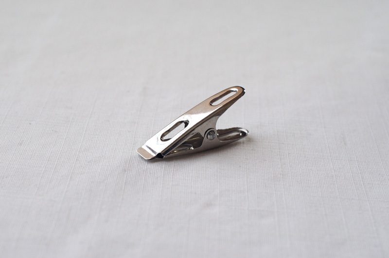 はさむ先端が金属の切断面になっているので、衣類を傷つけないようにやさしく使うのがよいと思われます。